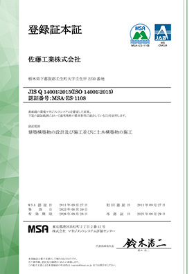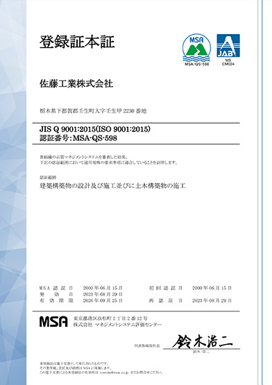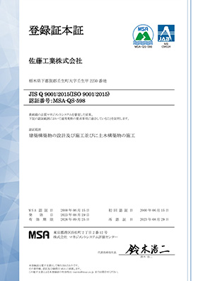 認証の範囲:建築構築物の設計および施工ならびに土木構築物の施工
