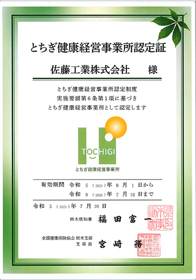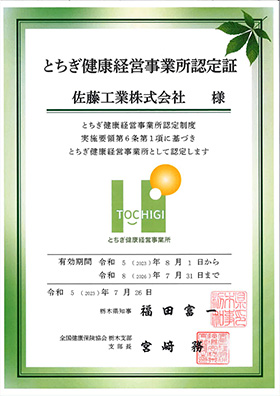 令和3年10月、栃木県産業振興センターが募集する「とちぎSDGs推進企業」に佐藤工業が登録されました。