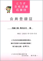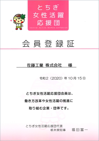 とちぎ女性活躍応援団会員は、働き方改革や女性活躍の推進に取り組む企業・団体で、当社も登録し取り組んでいます。