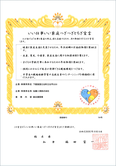 いい仕事いい家庭つぎつぎとちぎ宣言登録