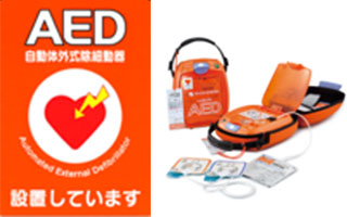 会社にAEDを設置し、もしもの時に社内はもちろん、地域の方々にもご利用いただけるよう、会社の門扉付近と玄関にAED設置ポスターを掲示しています。また日本救急医療財団 全国AEDマップと日本全国AEDマップに登録し、インターネットでも検索できます。